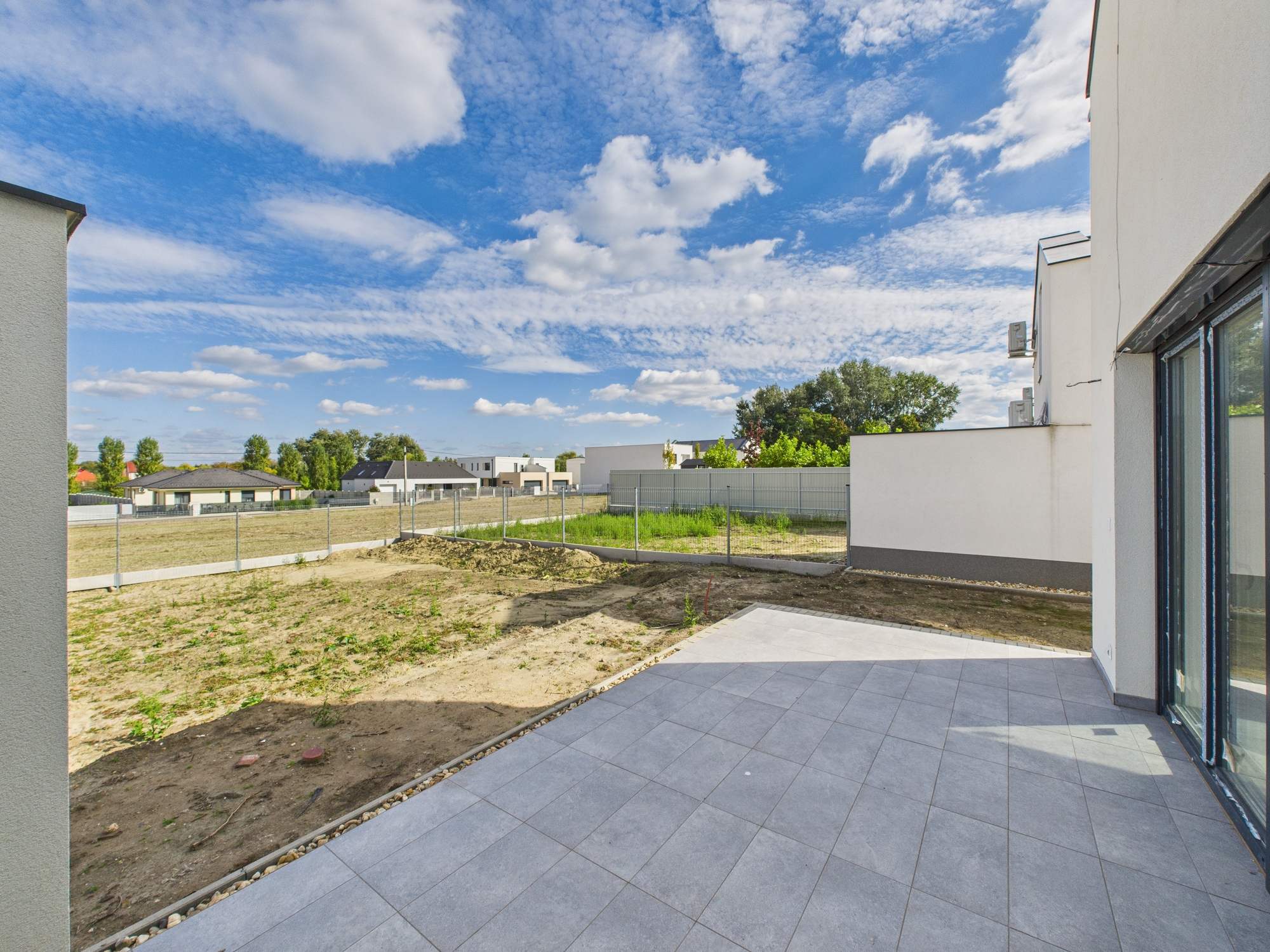 A vételár tartalmazza a telket, a házat, a hőszivattyús klíma, az utcafronti és hátulsó kerítést, valamint a burkolatok és szaniterek munkadíját.